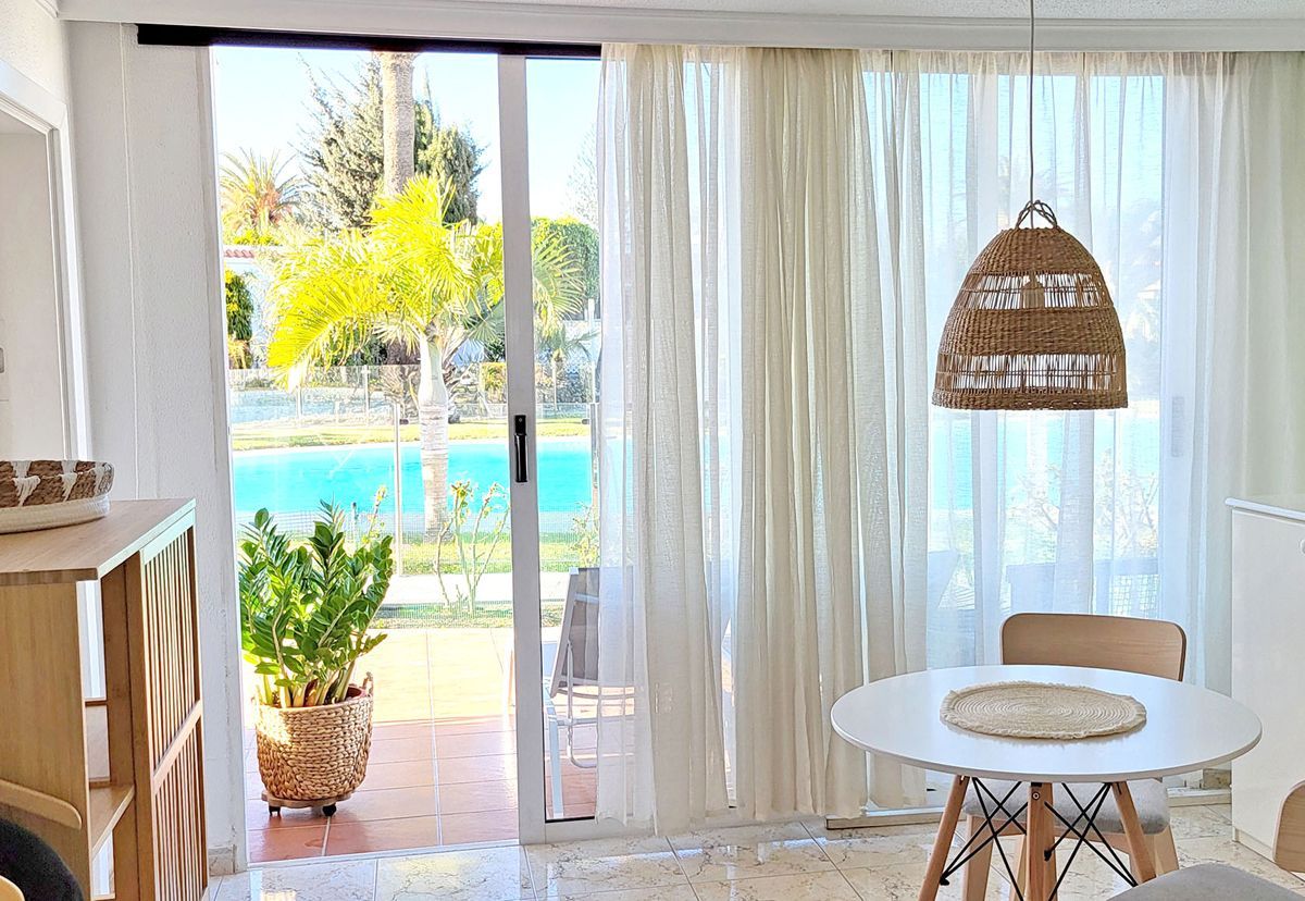 Kaunis allasalue aurinkotuoleineen ja rehevä puutarha palmuineen. Rauhallinen ja hyvin hoidettu ympäristö hyvään oloon.
