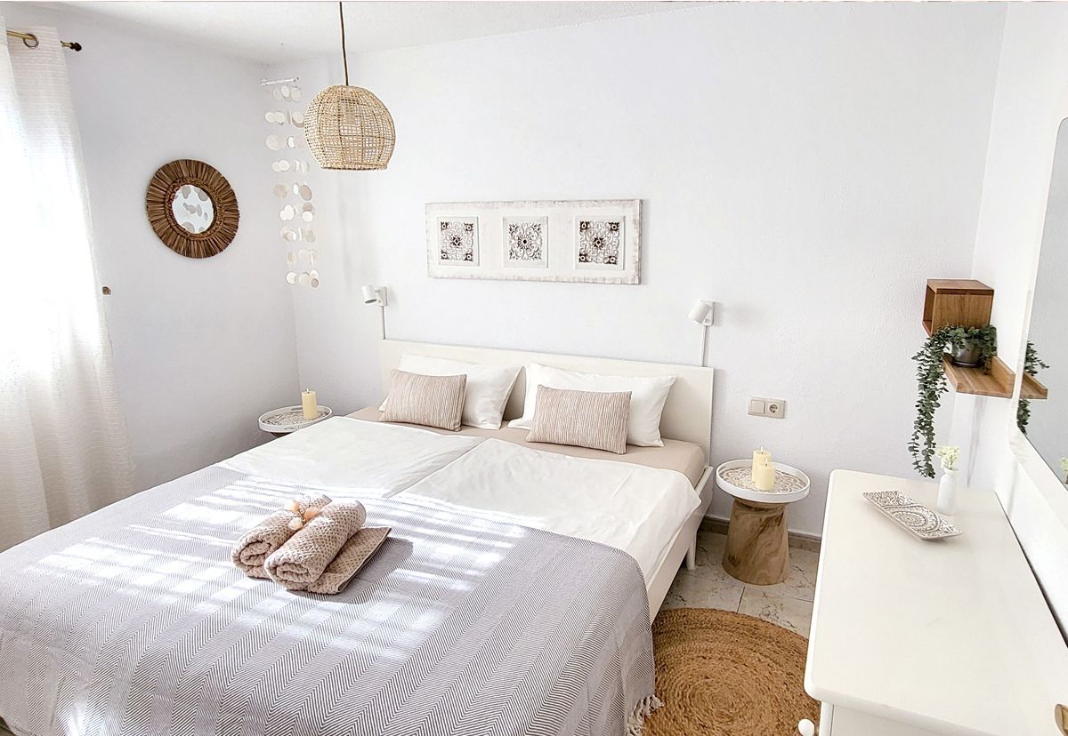 eine Oase der Ruhe. Helle Farben und ein bequemes Doppelbett laden zum Träumen ein in unseren 2 Schlafzimmern. Die lichtdurchfluteten Räume sorgen für viel Tageslicht, während Verdunkelungs-möglichkeiten einen erholsamen Schlaf garantieren. Perfekt für Ihren Urlaub auf Gran Canaria!"