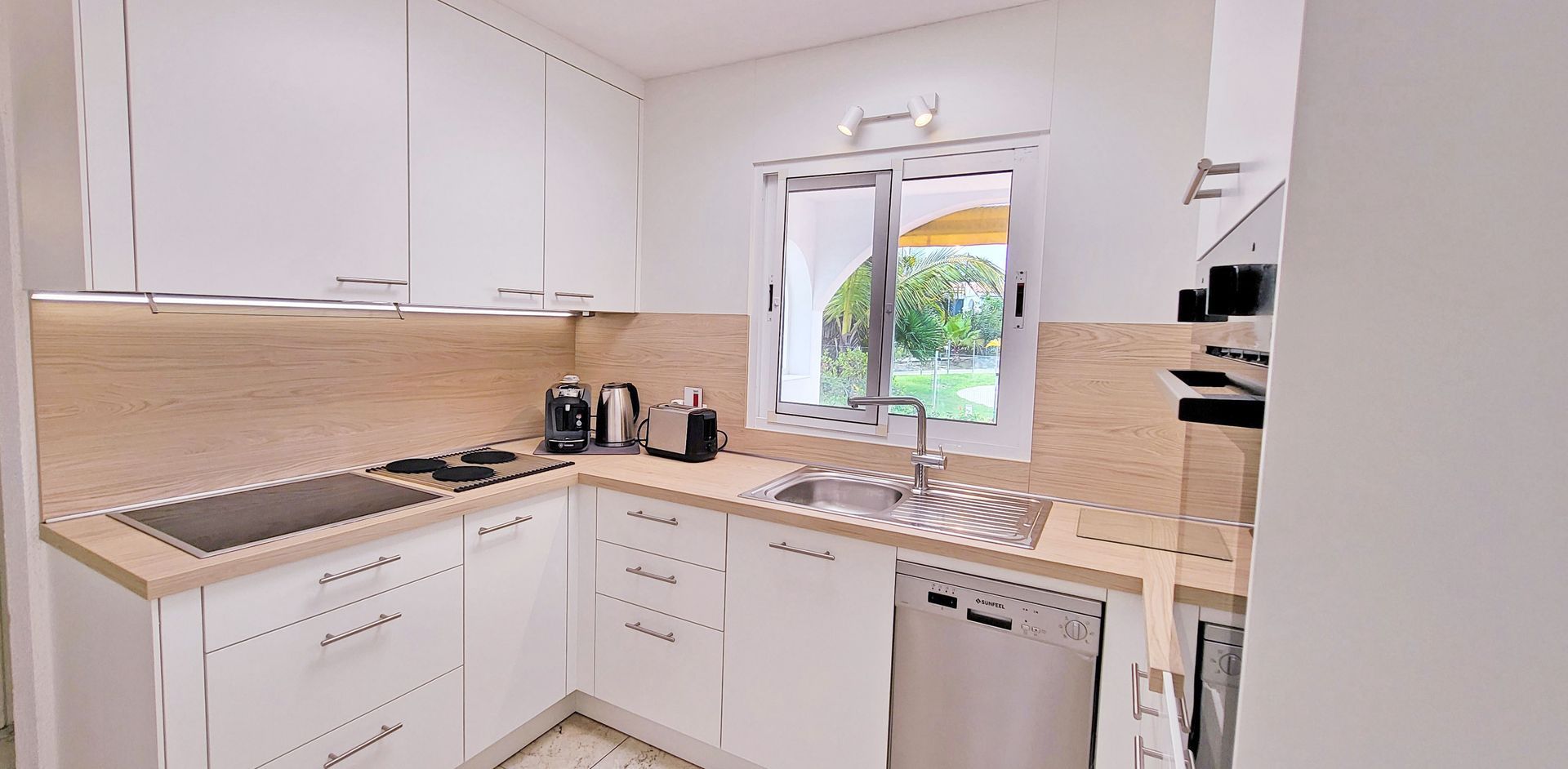 Es gibt auch eine Tassimo Kapselmaschine, Eine normale Kafeemaschine, einen Toster, ein Waffeleisen, einen Wasserkocher und vieles mehr. Hier können bequemer ihre Speisen zubereiten.